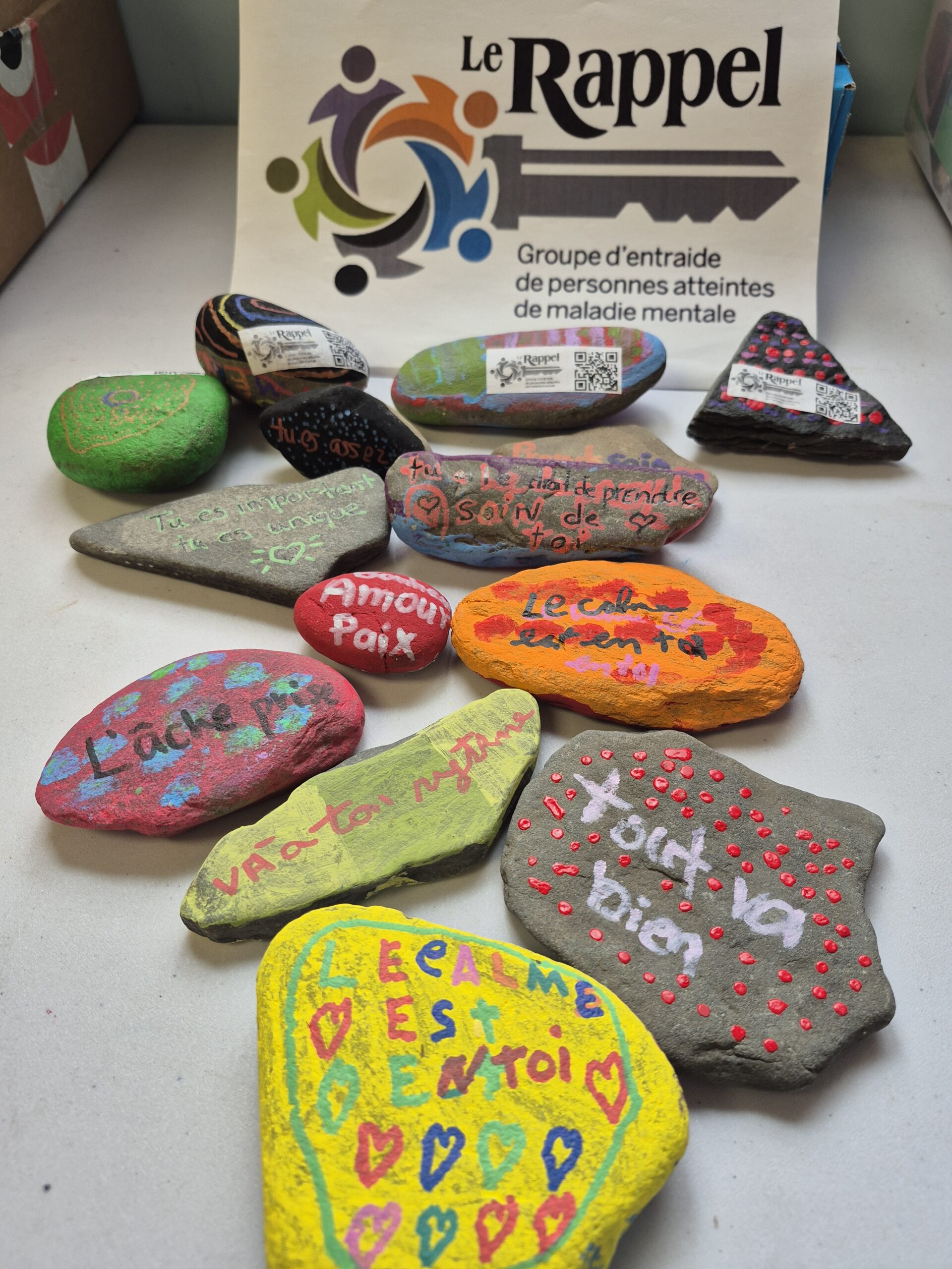 Le Groupe d’Entraide Le Rappel s’est inspiré du mouvement « Accroche-moi un sourire » diffusé sur Facebook. Dans les dernières semaines, les membres ont peint une vingtaine de pierres qui seront déposées prochainement dans différents parcs de Saint-Georges.