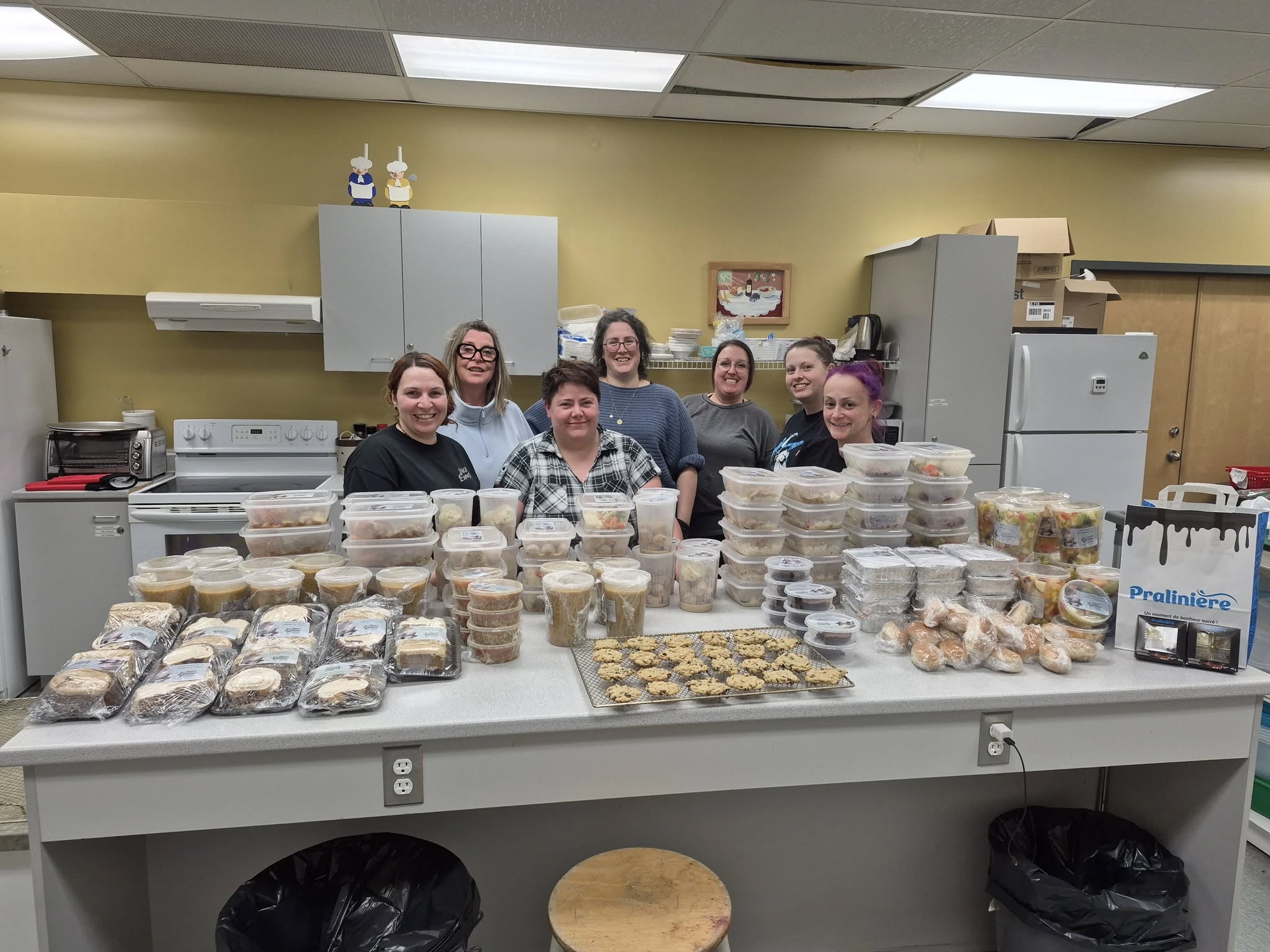 Vendredi dernier, notre équipe s’est réunie pour préparer 127 plats destinés à certains de nos membres  (Karine était absente sur la photo de groupe)